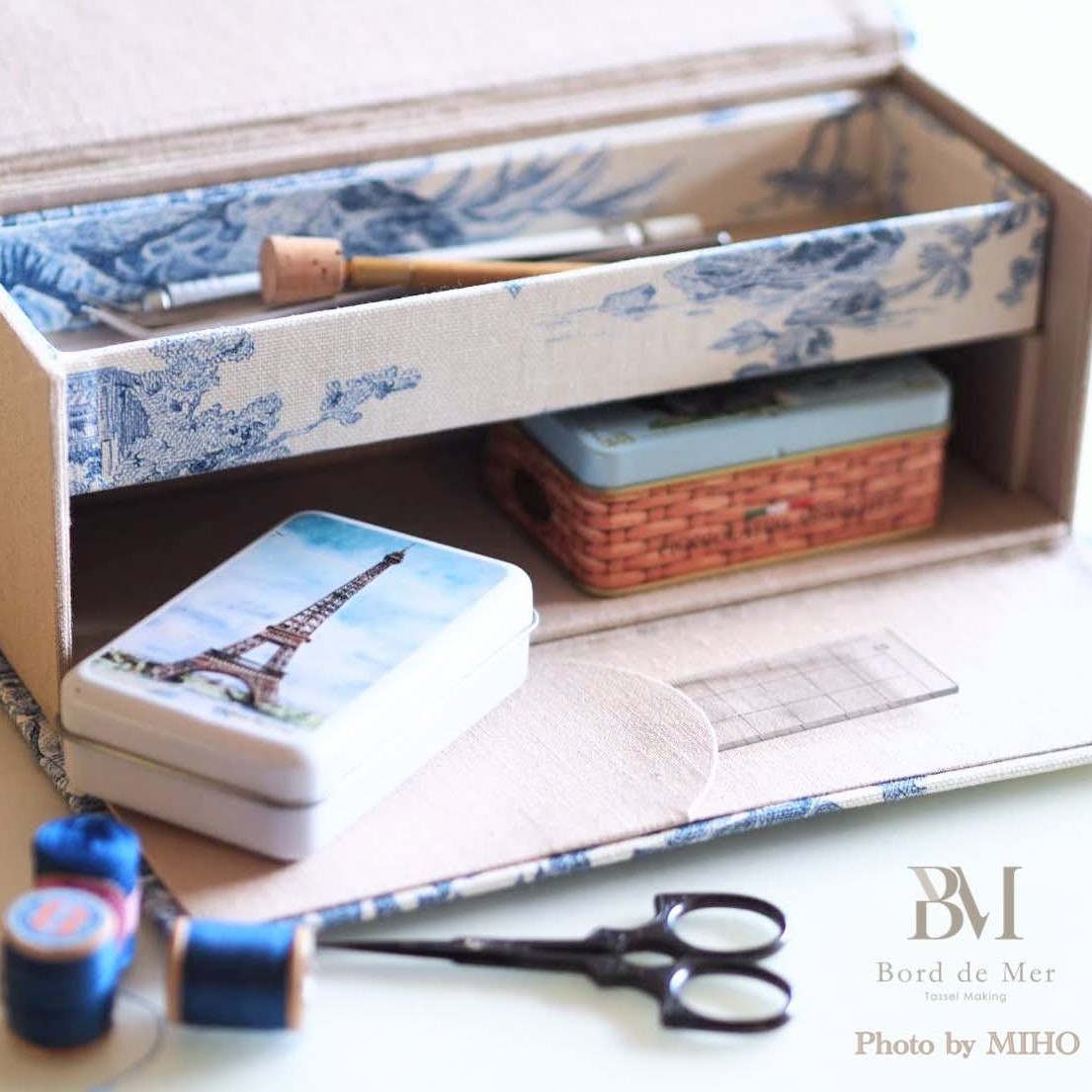 本体は1日で、内側トレイは別日に半日かけて制作するので、ご希望があれば2日目にオリジナルタッセルのレッスンを追加できます。