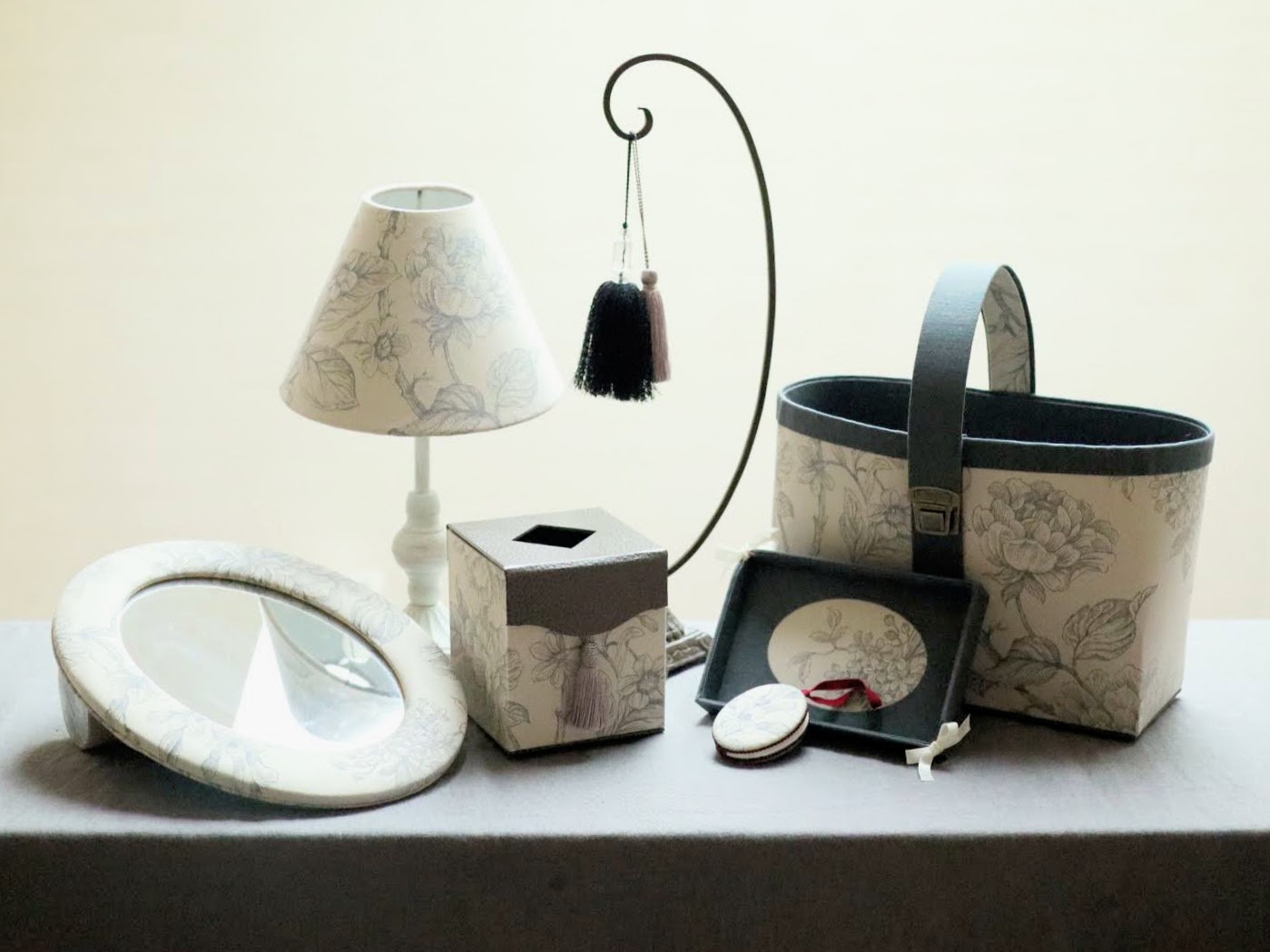 厚紙に美しい布を貼る技法カルトナージュでインテリア小物やそれに合うタッセルなどを作り、 フランス伝統のクラフトを学べる講座です。